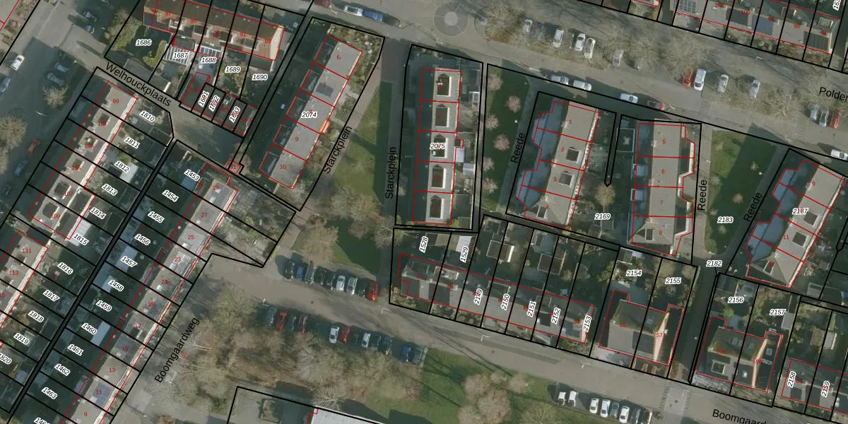 Starckplein 1 is gelegen op kadastraal perceel GVT00B2075. Deze kadastrale aanduiding is uniek en wordt gebruikt door het Kadaster om eigendomsrechten en andere zakelijke rechten vast te leggen. Het perceel maakt onderdeel uit van de kadastrale gemeente Geervliet.