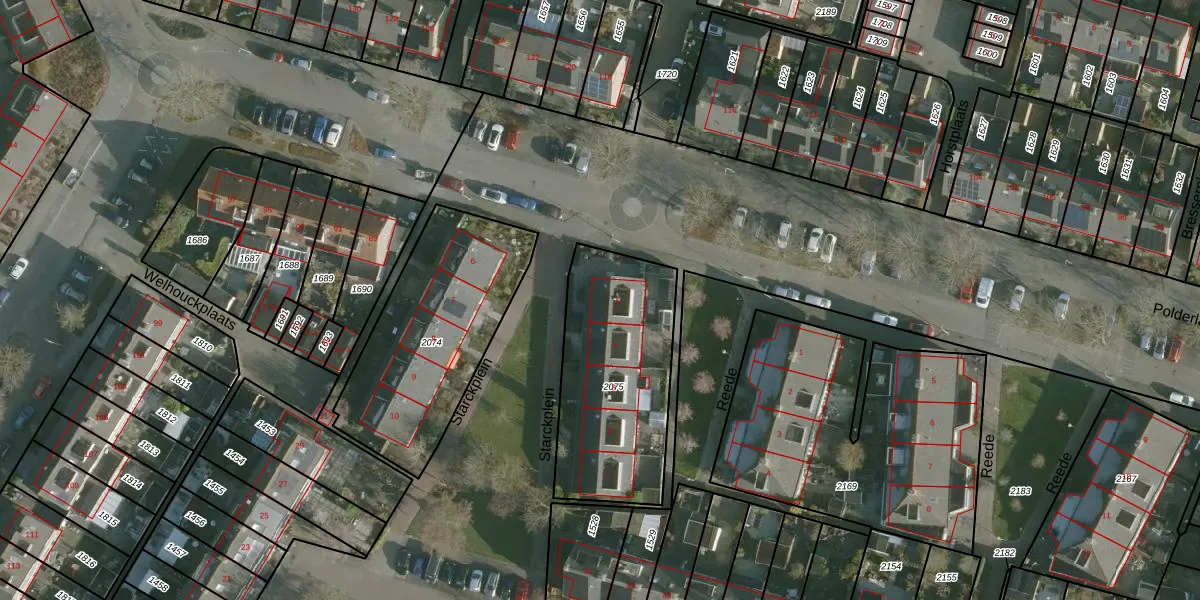 Starckplein 5 is gelegen op kadastraal perceel GVT00B2075. Deze kadastrale aanduiding is uniek en wordt gebruikt door het Kadaster om eigendomsrechten en andere zakelijke rechten vast te leggen. Het perceel maakt onderdeel uit van de kadastrale gemeente Geervliet.