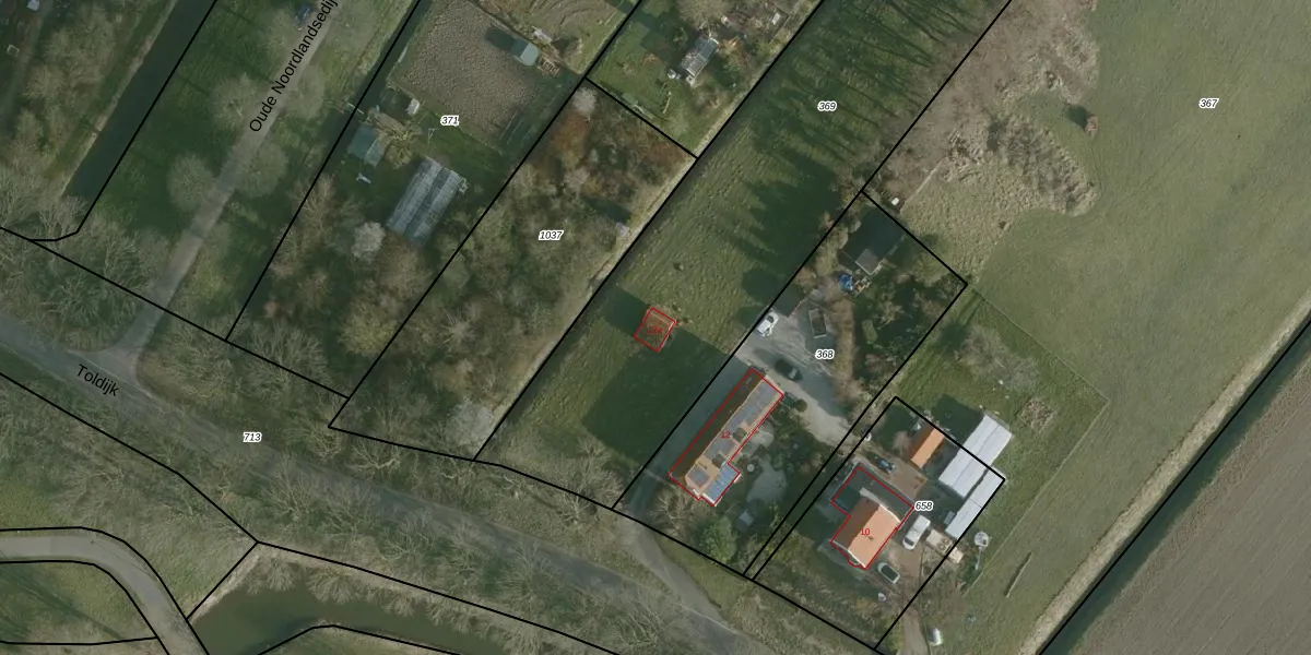Het perceel waarop Toldijk 12-a staat heeft een oppervlakte van 3970 m². Dit is een zeer groot perceel. De perceeloppervlakte wordt geregistreerd door het Kadaster. Gedetailleerde informatie over de maten van dit perceel kunt u vinden in het rapport Kadastrale kaart met maatvoering van Toldijk 12-a.