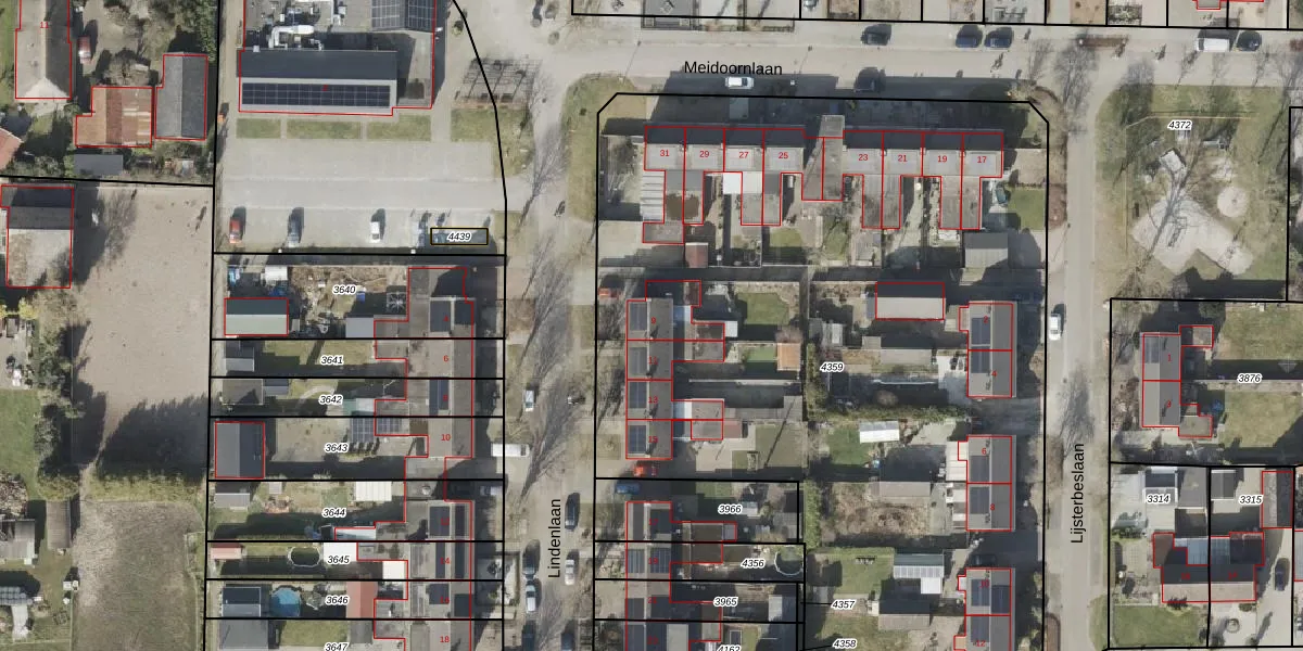 Het perceel waarop Lindenlaan 9 staat heeft een oppervlakte van 5219 m². Dit is een zeer groot perceel. De perceeloppervlakte wordt geregistreerd door het Kadaster. Gedetailleerde informatie over de maten van dit perceel kunt u vinden in het rapport Kadastrale kaart met maatvoering van Lindenlaan 9.