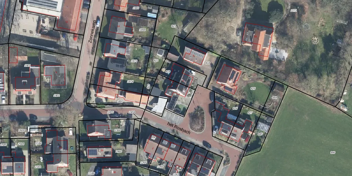 het Rosbach 1 is gelegen op kadastraal perceel GTR00K820. Deze kadastrale aanduiding is uniek en wordt gebruikt door het Kadaster om eigendomsrechten en andere zakelijke rechten vast te leggen. Het perceel maakt onderdeel uit van de kadastrale gemeente Geesteren.