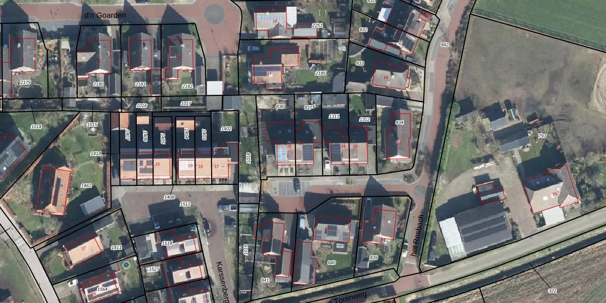 het Rosbach 26 is gelegen op kadastraal perceel GTR00K837. Deze kadastrale aanduiding is uniek en wordt gebruikt door het Kadaster om eigendomsrechten en andere zakelijke rechten vast te leggen. Het perceel maakt onderdeel uit van de kadastrale gemeente Geesteren.