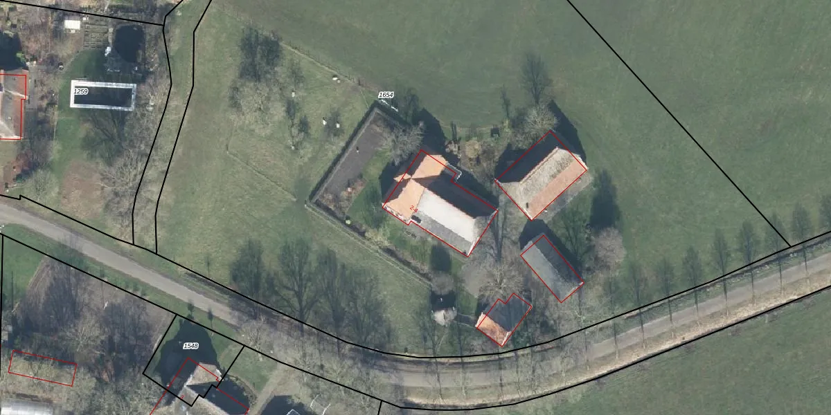 Het adres is gelegen op perceel 1654 in de sectie K en de kadastrale gemeente Geesteren. De kadastrale aanduiding is aldus GTR00-K-1654. De gemiddelde perceeloppervlakte in de kadastrale gemeente Geesteren is 8642,12 m². Dit perceel is met zijn 1,2 ha dus groter dan gemiddeld. Het grootste perceel in de kadastrale gemeente is 31,3 ha. Het kleinste perceel heeft een oppervlakte van 0 m². Op het perceel zijn 2 adressen aanwezig. In de Basisregistratie Kadaster (BRK) werden de grenzen van het perceel geregistreerd op 04-03-2021.