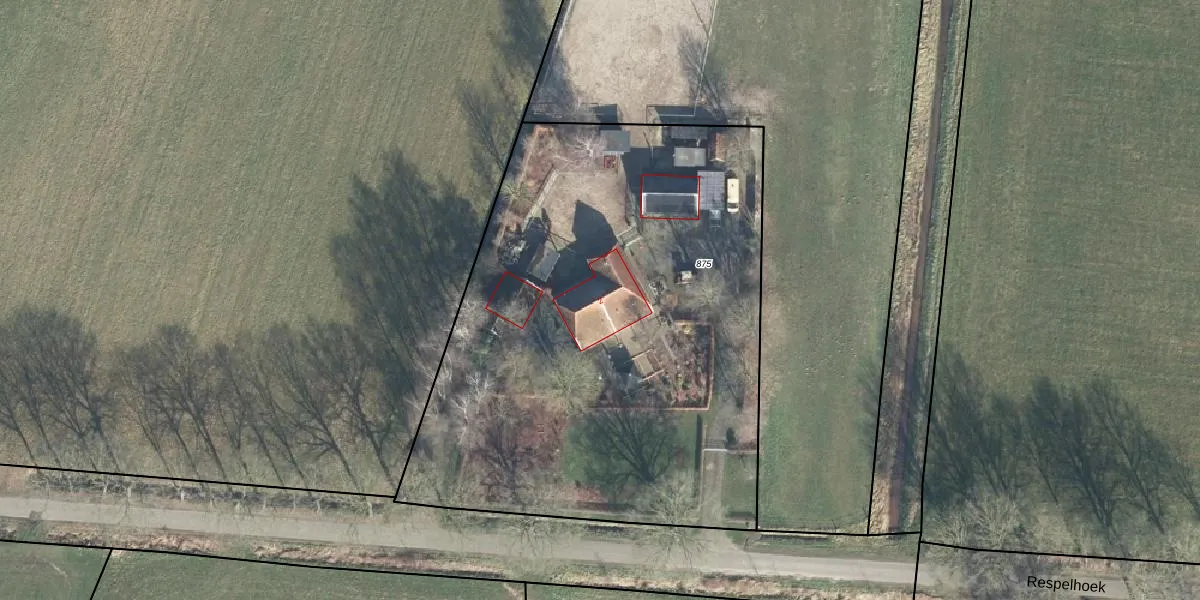Het perceel waarop Respelhoek 2 staat heeft een oppervlakte van 3335 m². Dit is een zeer groot perceel. De perceeloppervlakte wordt geregistreerd door het Kadaster. Gedetailleerde informatie over de maten van dit perceel kunt u vinden in het rapport Kadastrale kaart met maatvoering van Respelhoek 2.