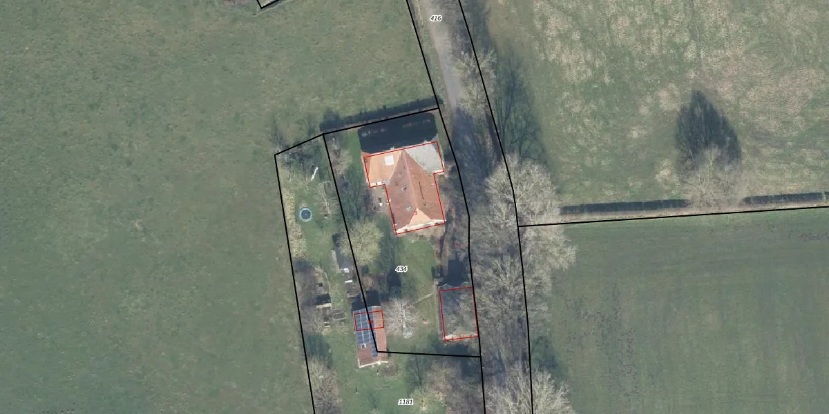 Het adres is gelegen op perceel 434 in de sectie K en de kadastrale gemeente Geesteren. De kadastrale aanduiding is aldus GTR00-K-434. Het perceel is kleiner dan gemiddeld in Geesteren. Het perceel is 1600 m² groot, terwijl het gemiddelde ligt op 8642,12 m². De grootste perceeloppervlakte in de kadastrale gemeente is 31,3 ha. De kleinste oppervlakte bedraagt 0 m². Op het perceel liggen in totaal 2 adressen. In de Basisregistratie Kadaster (BRK) werden de grenzen van het perceel geregistreerd op 02-02-2005.
