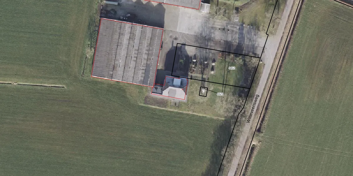 Het perceel waarop Witteveensweg 4 staat heeft een oppervlakte van 6,0 ha. Dit is een zeer groot perceel. De perceeloppervlakte wordt geregistreerd door het Kadaster. Gedetailleerde informatie over de maten van dit perceel kunt u vinden in het rapport Kadastrale kaart met maatvoering van Witteveensweg 4.