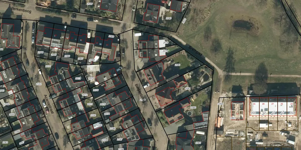 Berkenboog 33 is gelegen op kadastraal perceel GFN00B2080. Deze kadastrale aanduiding is uniek en wordt gebruikt door het Kadaster om eigendomsrechten en andere zakelijke rechten vast te leggen. Het perceel maakt onderdeel uit van de kadastrale gemeente Geffen.