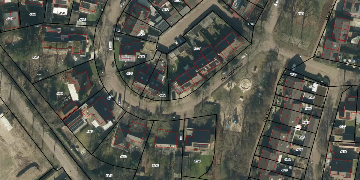 Het perceel waarop De Rosmolen 30 staat heeft een oppervlakte van 1222 m². Dit is een zeer groot perceel. De perceeloppervlakte wordt geregistreerd door het Kadaster. Gedetailleerde informatie over de maten van dit perceel kunt u vinden in het rapport Kadastrale kaart met maatvoering van De Rosmolen 30.