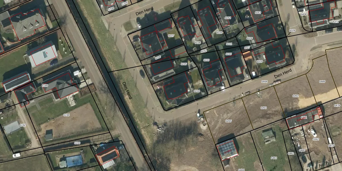 Het perceel waarop Den Herd 6 staat heeft een oppervlakte van 490 m². Dit is een groot perceel. De perceeloppervlakte wordt geregistreerd door het Kadaster. Gedetailleerde informatie over de maten van dit perceel kunt u vinden in het rapport Kadastrale kaart met maatvoering van Den Herd 6.
