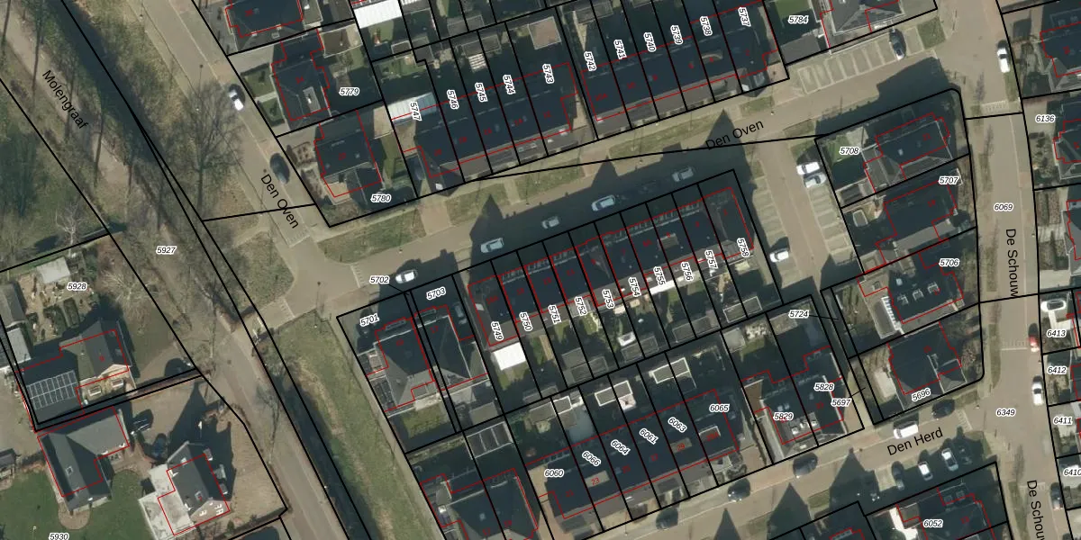 Gebruik de zoekbalk of klik op een perceel voor informatie over de adressen binnen dit perceel.