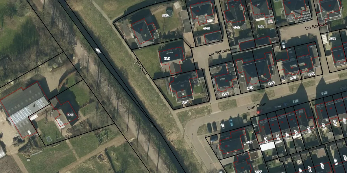 Het perceel waarop Den Oven 21 staat heeft een oppervlakte van 497 m². Dit is een groot perceel. De perceeloppervlakte wordt geregistreerd door het Kadaster. Gedetailleerde informatie over de maten van dit perceel kunt u vinden in het rapport Kadastrale kaart met maatvoering van Den Oven 21.
