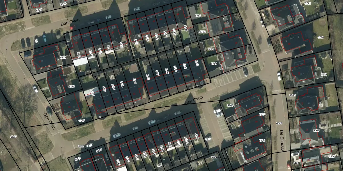 Gebruik de zoekbalk of klik op een perceel voor informatie over de adressen binnen dit perceel.