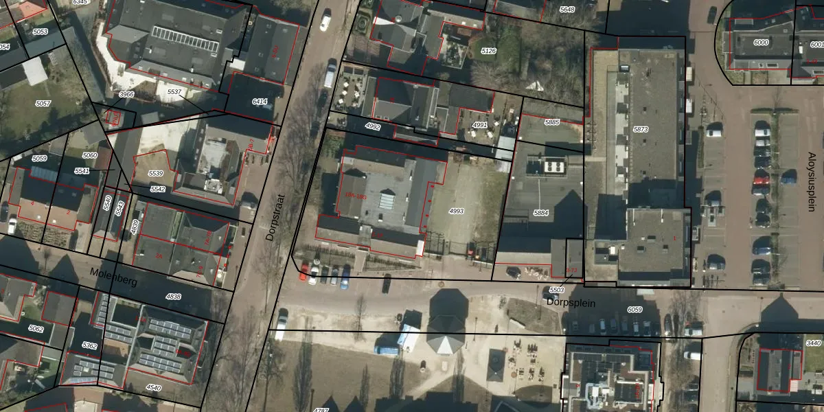Het perceel waarop Dorpstraat 18-E staat heeft een oppervlakte van 1558 m². Dit is een zeer groot perceel. De perceeloppervlakte wordt geregistreerd door het Kadaster. Gedetailleerde informatie over de maten van dit perceel kunt u vinden in het rapport Kadastrale kaart met maatvoering van Dorpstraat 18-E.