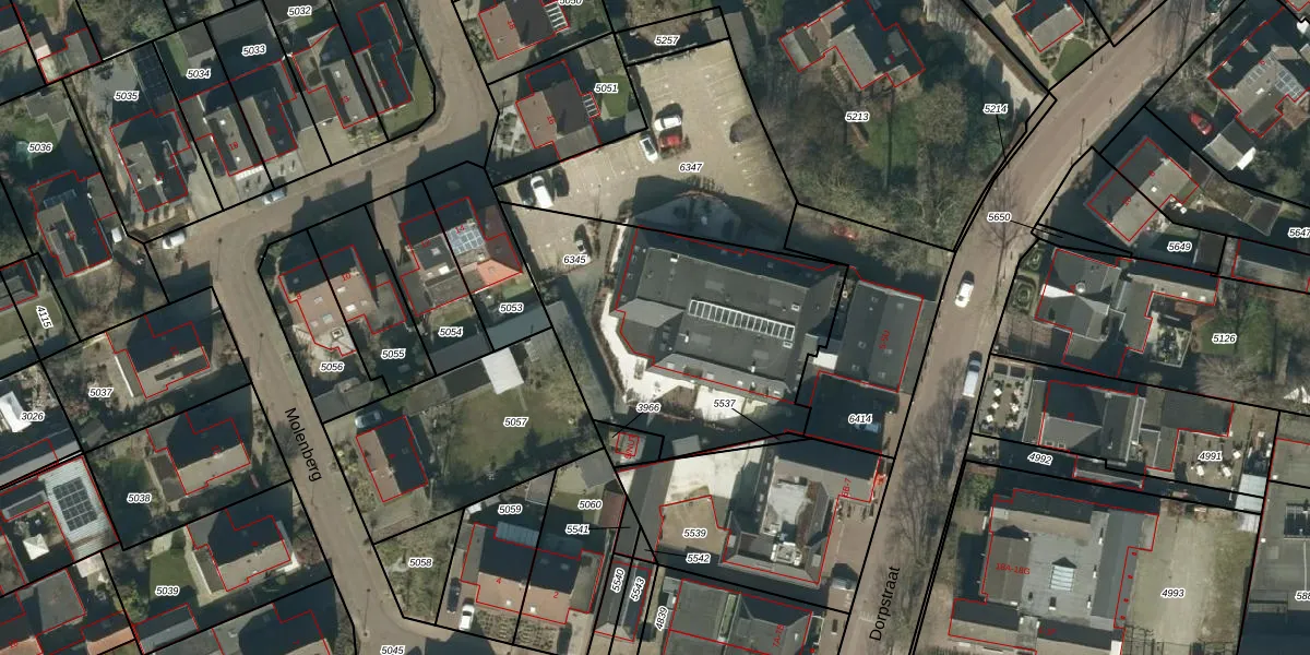 Het perceel waarop Dorpstraat 5-L staat heeft een oppervlakte van 1282 m². Dit is een zeer groot perceel. De perceeloppervlakte wordt geregistreerd door het Kadaster. Gedetailleerde informatie over de maten van dit perceel kunt u vinden in het rapport Kadastrale kaart met maatvoering van Dorpstraat 5-L.