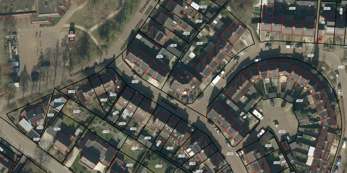 Het perceel waarop Eikenwal 13 staat heeft een oppervlakte van 1366 m². Dit is een zeer groot perceel. De perceeloppervlakte wordt geregistreerd door het Kadaster. Gedetailleerde informatie over de maten van dit perceel kunt u vinden in het rapport Kadastrale kaart met maatvoering van Eikenwal 13.