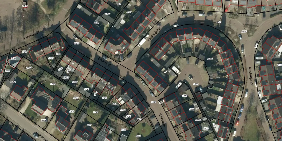 Het perceel waarop Eikenwal 15 staat heeft een oppervlakte van 2875 m². Dit is een zeer groot perceel. De perceeloppervlakte wordt geregistreerd door het Kadaster. Gedetailleerde informatie over de maten van dit perceel kunt u vinden in het rapport Kadastrale kaart met maatvoering van Eikenwal 15.