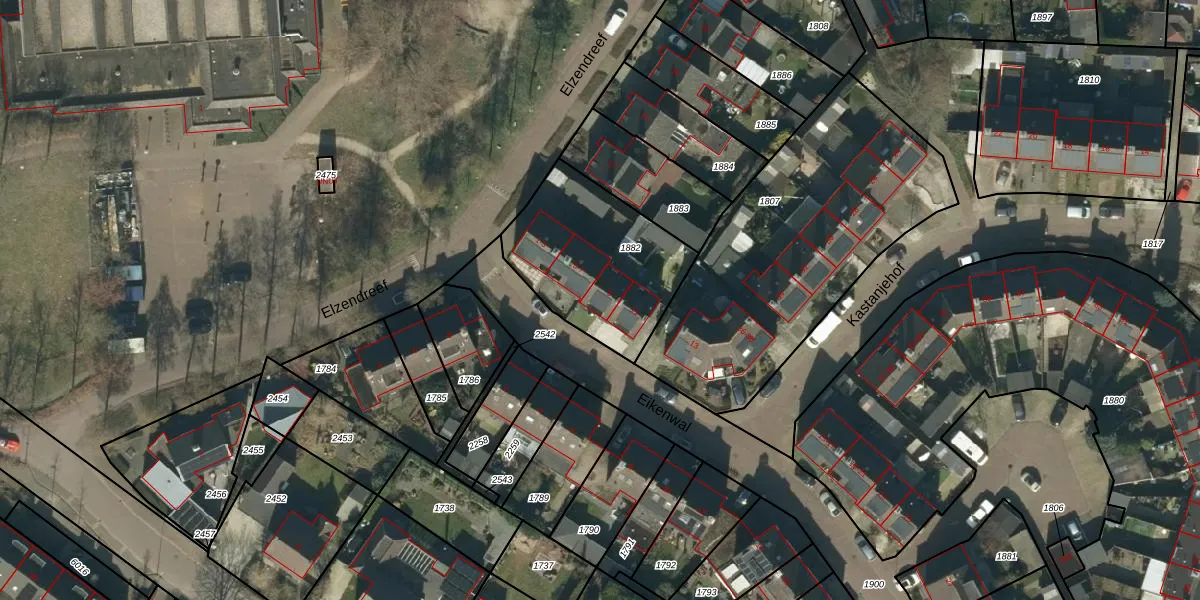 Het perceel waarop Eikenwal 9 staat heeft een oppervlakte van 601 m². Dit is een groot perceel. De perceeloppervlakte wordt geregistreerd door het Kadaster. Gedetailleerde informatie over de maten van dit perceel kunt u vinden in het rapport Kadastrale kaart met maatvoering van Eikenwal 9.