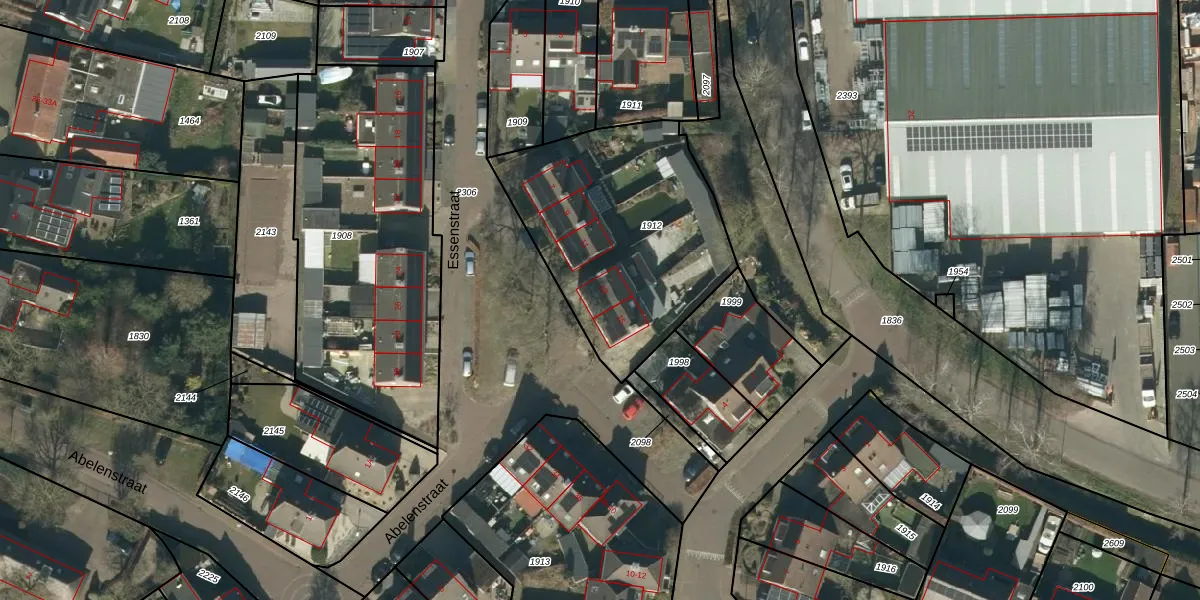 Het perceel waarop Essenstraat 13 staat heeft een oppervlakte van 1045 m². Dit is een zeer groot perceel. De perceeloppervlakte wordt geregistreerd door het Kadaster. Gedetailleerde informatie over de maten van dit perceel kunt u vinden in het rapport Kadastrale kaart met maatvoering van Essenstraat 13.
