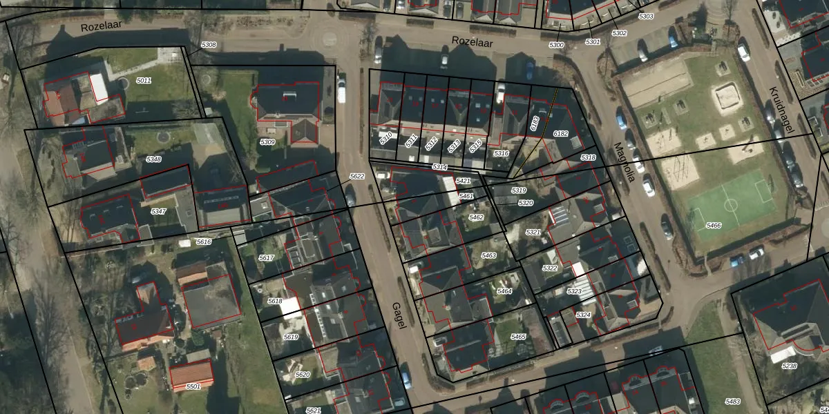 Het perceel waarop Gagel 1 staat heeft een oppervlakte van 105 m². Dit is een middelgroot perceel. De perceeloppervlakte wordt geregistreerd door het Kadaster. Gedetailleerde informatie over de maten van dit perceel kunt u vinden in het rapport Kadastrale kaart met maatvoering van Gagel 1.