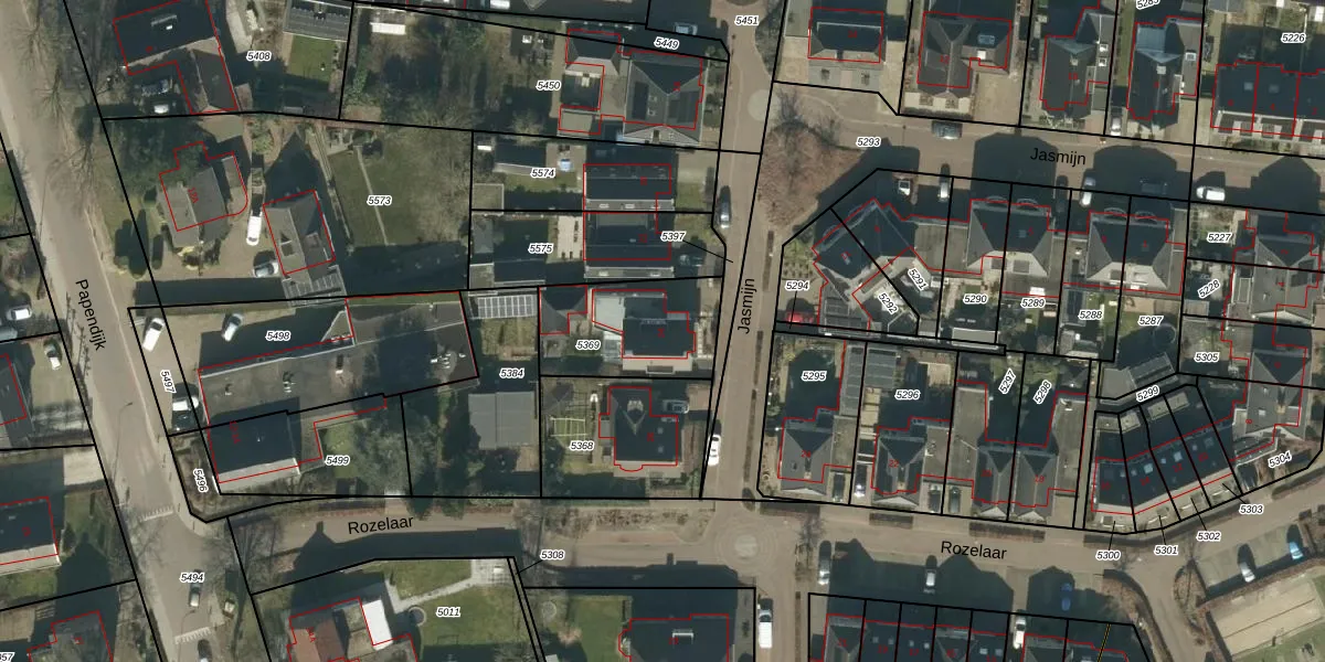Het perceel waarop Jasmijn 24 staat heeft een oppervlakte van 392 m². Dit is een groot perceel. De perceeloppervlakte wordt geregistreerd door het Kadaster. Gedetailleerde informatie over de maten van dit perceel kunt u vinden in het rapport Kadastrale kaart met maatvoering van Jasmijn 24.