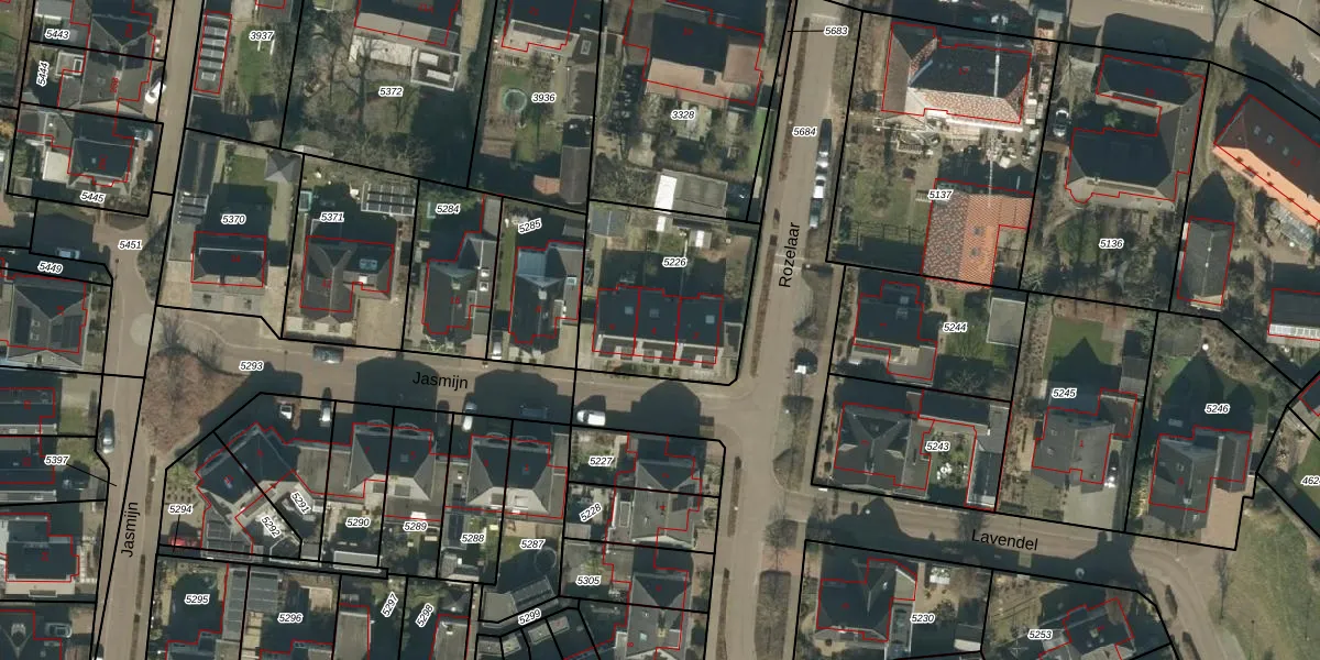 Het perceel waarop Jasmijn 4 staat heeft een oppervlakte van 642 m². Dit is een groot perceel. De perceeloppervlakte wordt geregistreerd door het Kadaster. Gedetailleerde informatie over de maten van dit perceel kunt u vinden in het rapport Kadastrale kaart met maatvoering van Jasmijn 4.