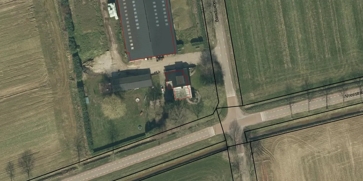 Het perceel waarop Kruiskampweg 2 staat heeft een oppervlakte van 22,5 ha. Dit is een zeer groot perceel. De perceeloppervlakte wordt geregistreerd door het Kadaster. Gedetailleerde informatie over de maten van dit perceel kunt u vinden in het rapport Kadastrale kaart met maatvoering van Kruiskampweg 2.