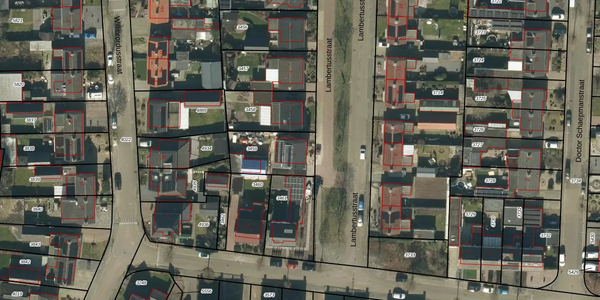 Het perceel waarop Lambertusstraat 2 staat heeft een oppervlakte van 410 m². Dit is een groot perceel. De perceeloppervlakte wordt geregistreerd door het Kadaster. Gedetailleerde informatie over de maten van dit perceel kunt u vinden in het rapport Kadastrale kaart met maatvoering van Lambertusstraat 2.
