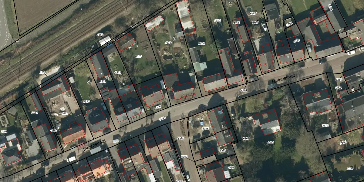 Het perceel waarop Molenstraat 13 staat heeft een oppervlakte van 915 m². Dit is een groot perceel. De perceeloppervlakte wordt geregistreerd door het Kadaster. Gedetailleerde informatie over de maten van dit perceel kunt u vinden in het rapport Kadastrale kaart met maatvoering van Molenstraat 13.