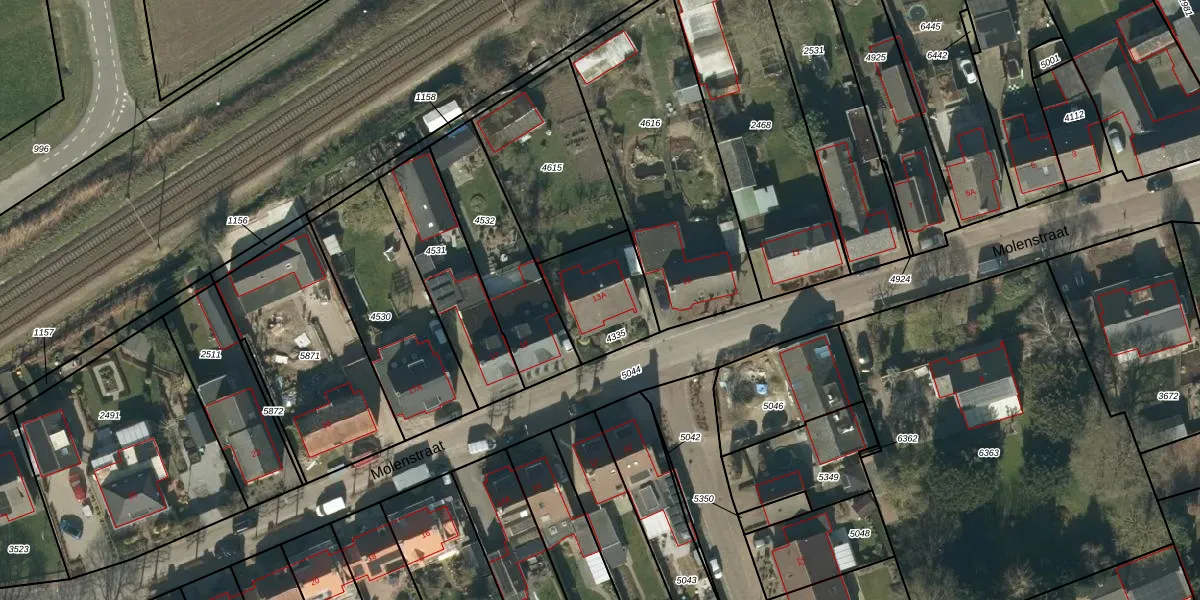 Het perceel waarop Molenstraat 13-A staat heeft een oppervlakte van 280 m². Dit is een middelgroot perceel. De perceeloppervlakte wordt geregistreerd door het Kadaster. Gedetailleerde informatie over de maten van dit perceel kunt u vinden in het rapport Kadastrale kaart met maatvoering van Molenstraat 13-A.