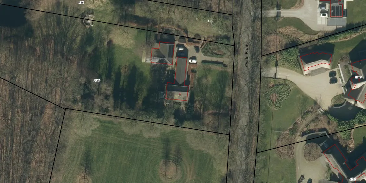 Het perceel waarop Oude Baan 11 staat heeft een oppervlakte van 7510 m². Dit is een zeer groot perceel. De perceeloppervlakte wordt geregistreerd door het Kadaster. Gedetailleerde informatie over de maten van dit perceel kunt u vinden in het rapport Kadastrale kaart met maatvoering van Oude Baan 11.