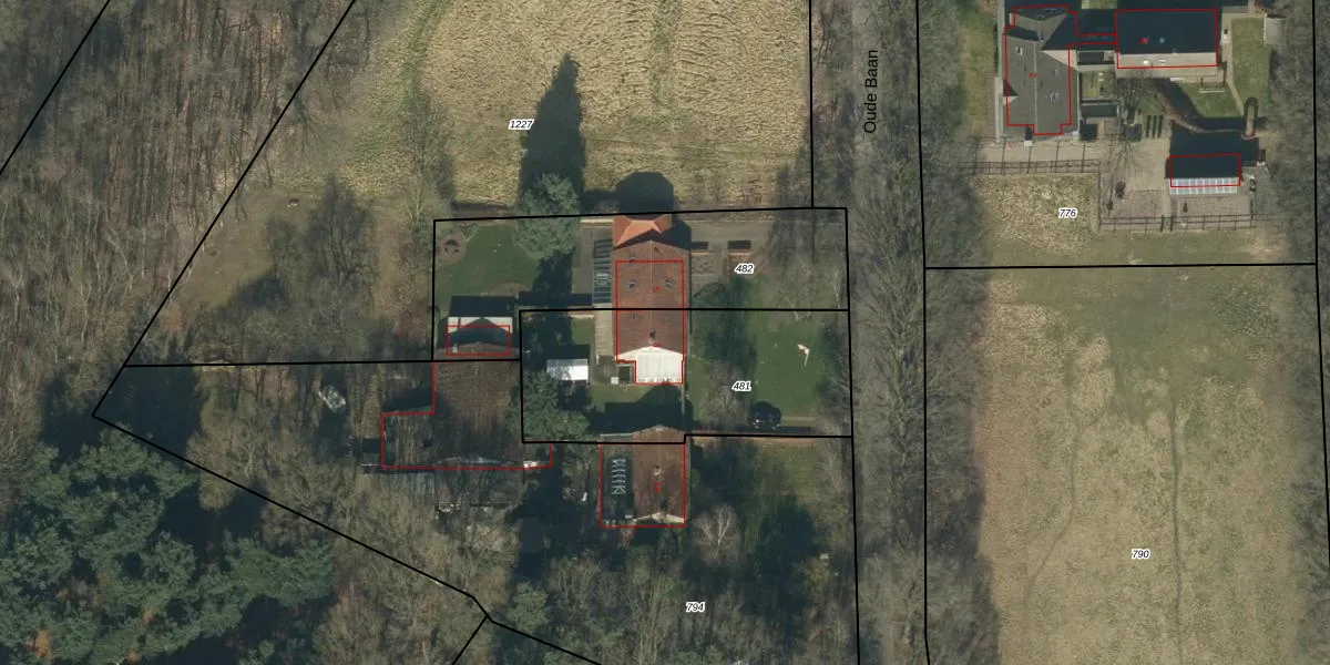 Het perceel waarop Oude Baan 3 staat heeft een oppervlakte van 960 m². Dit is een groot perceel. De perceeloppervlakte wordt geregistreerd door het Kadaster. Gedetailleerde informatie over de maten van dit perceel kunt u vinden in het rapport Kadastrale kaart met maatvoering van Oude Baan 3.