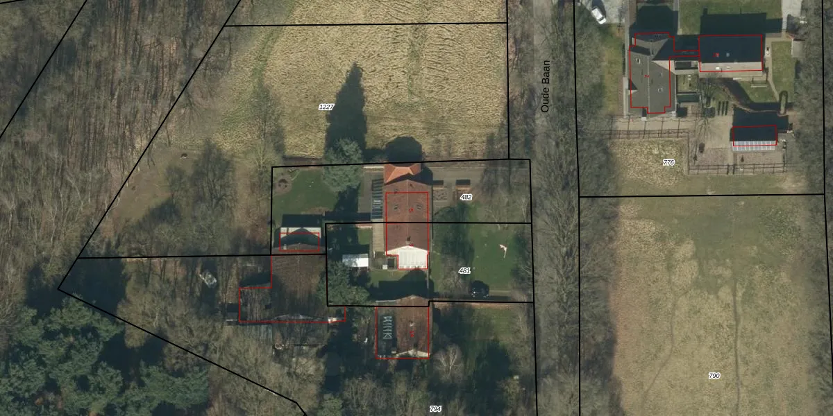 Het perceel waarop Oude Baan 5 staat heeft een oppervlakte van 990 m². Dit is een groot perceel. De perceeloppervlakte wordt geregistreerd door het Kadaster. Gedetailleerde informatie over de maten van dit perceel kunt u vinden in het rapport Kadastrale kaart met maatvoering van Oude Baan 5.