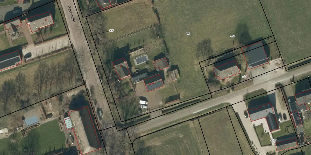 Het perceel waarop Papendijk 30-MZ staat heeft een oppervlakte van 6985 m². Dit is een zeer groot perceel. De perceeloppervlakte wordt geregistreerd door het Kadaster. Gedetailleerde informatie over de maten van dit perceel kunt u vinden in het rapport Kadastrale kaart met maatvoering van Papendijk 30-MZ.