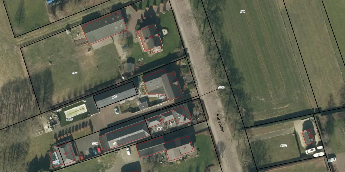 Papendijk 33 is gelegen op kadastraal perceel GFN00D1020. Deze kadastrale aanduiding is uniek en wordt gebruikt door het Kadaster om eigendomsrechten en andere zakelijke rechten vast te leggen. Het perceel maakt onderdeel uit van de kadastrale gemeente Geffen.