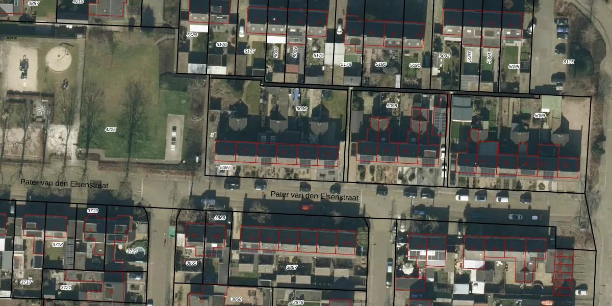 Pater van den Elsenstraat 17 is gelegen op kadastraal perceel GFN00C5097. Deze kadastrale aanduiding is uniek en wordt gebruikt door het Kadaster om eigendomsrechten en andere zakelijke rechten vast te leggen. Het perceel maakt onderdeel uit van de kadastrale gemeente Geffen.