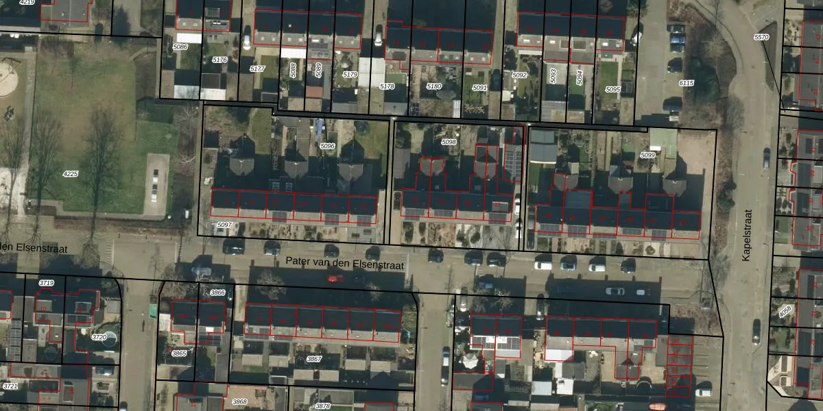 Pater van den Elsenstraat 21 is gelegen op kadastraal perceel GFN00C5098. Deze kadastrale aanduiding is uniek en wordt gebruikt door het Kadaster om eigendomsrechten en andere zakelijke rechten vast te leggen. Het perceel maakt onderdeel uit van de kadastrale gemeente Geffen.