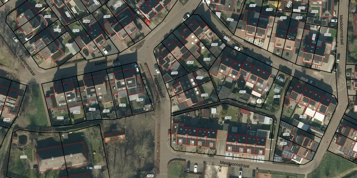 Gebruik de zoekbalk of klik op een perceel voor informatie over de adressen binnen dit perceel.