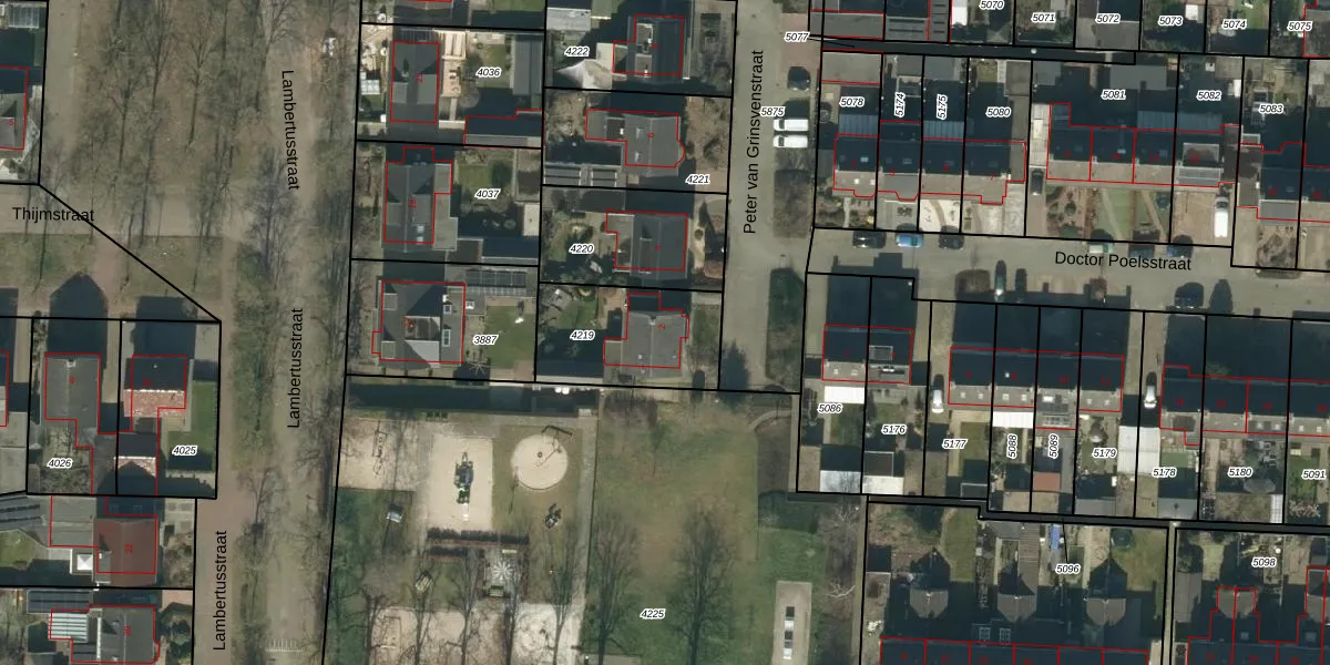 Het perceel waarop Peter van Grinsvenstraat 2 staat heeft een oppervlakte van 417 m². Dit is een groot perceel. De perceeloppervlakte wordt geregistreerd door het Kadaster. Gedetailleerde informatie over de maten van dit perceel kunt u vinden in het rapport Kadastrale kaart met maatvoering van Peter van Grinsvenstraat 2.