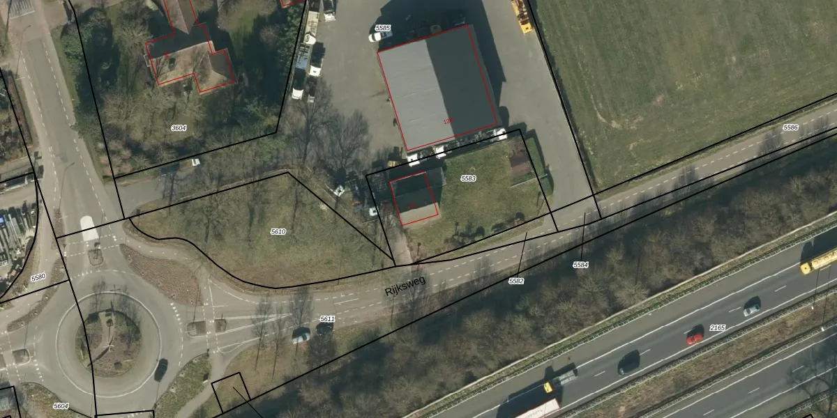 Rijksweg 12 is gelegen op kadastraal perceel GFN00C5583. Deze kadastrale aanduiding is uniek en wordt gebruikt door het Kadaster om eigendomsrechten en andere zakelijke rechten vast te leggen. Het perceel maakt onderdeel uit van de kadastrale gemeente Geffen.
