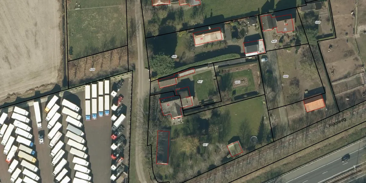 Rijksweg 32-A is gelegen op kadastraal perceel GFN00D447. Deze kadastrale aanduiding is uniek en wordt gebruikt door het Kadaster om eigendomsrechten en andere zakelijke rechten vast te leggen. Het perceel maakt onderdeel uit van de kadastrale gemeente Geffen.