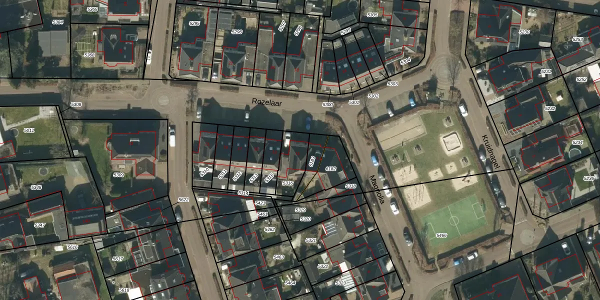 Het perceel waarop Rozelaar 11 staat heeft een oppervlakte van 180 m². Dit is een middelgroot perceel. De perceeloppervlakte wordt geregistreerd door het Kadaster. Gedetailleerde informatie over de maten van dit perceel kunt u vinden in het rapport Kadastrale kaart met maatvoering van Rozelaar 11.