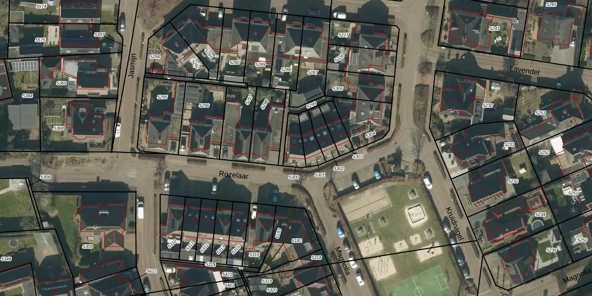 Het perceel waarop Rozelaar 16 staat heeft een oppervlakte van 103 m². Dit is een middelgroot perceel. De perceeloppervlakte wordt geregistreerd door het Kadaster. Gedetailleerde informatie over de maten van dit perceel kunt u vinden in het rapport Kadastrale kaart met maatvoering van Rozelaar 16.