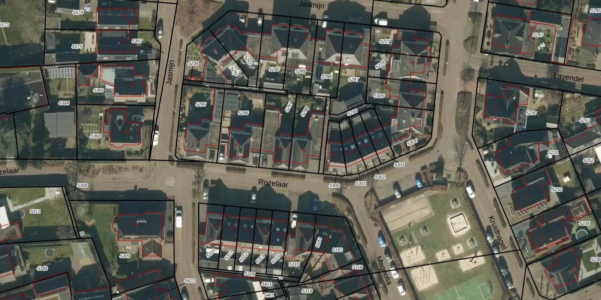 Het perceel waarop Rozelaar 18 staat heeft een oppervlakte van 256 m². Dit is een middelgroot perceel. De perceeloppervlakte wordt geregistreerd door het Kadaster. Gedetailleerde informatie over de maten van dit perceel kunt u vinden in het rapport Kadastrale kaart met maatvoering van Rozelaar 18.