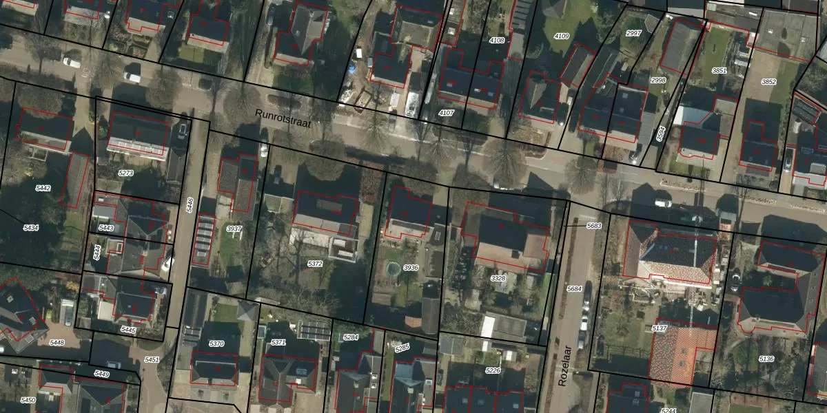 Runrotstraat 21 is gelegen op kadastraal perceel GFN00C3936. Deze kadastrale aanduiding is uniek en wordt gebruikt door het Kadaster om eigendomsrechten en andere zakelijke rechten vast te leggen. Het perceel maakt onderdeel uit van de kadastrale gemeente Geffen.