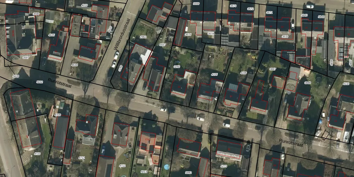 Het perceel waarop Runrotstraat 26 staat heeft een oppervlakte van 556 m². Dit is een groot perceel. De perceeloppervlakte wordt geregistreerd door het Kadaster. Gedetailleerde informatie over de maten van dit perceel kunt u vinden in het rapport Kadastrale kaart met maatvoering van Runrotstraat 26.