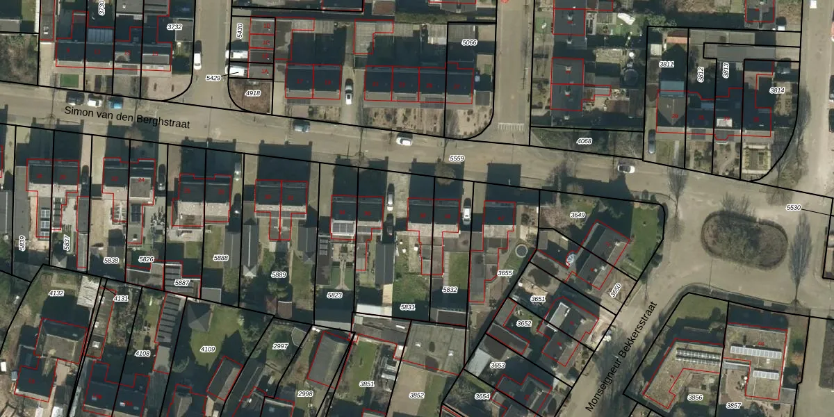 Simon van den Berghstraat 38 is gelegen op kadastraal perceel GFN00C5831. Deze kadastrale aanduiding is uniek en wordt gebruikt door het Kadaster om eigendomsrechten en andere zakelijke rechten vast te leggen. Het perceel maakt onderdeel uit van de kadastrale gemeente Geffen.
