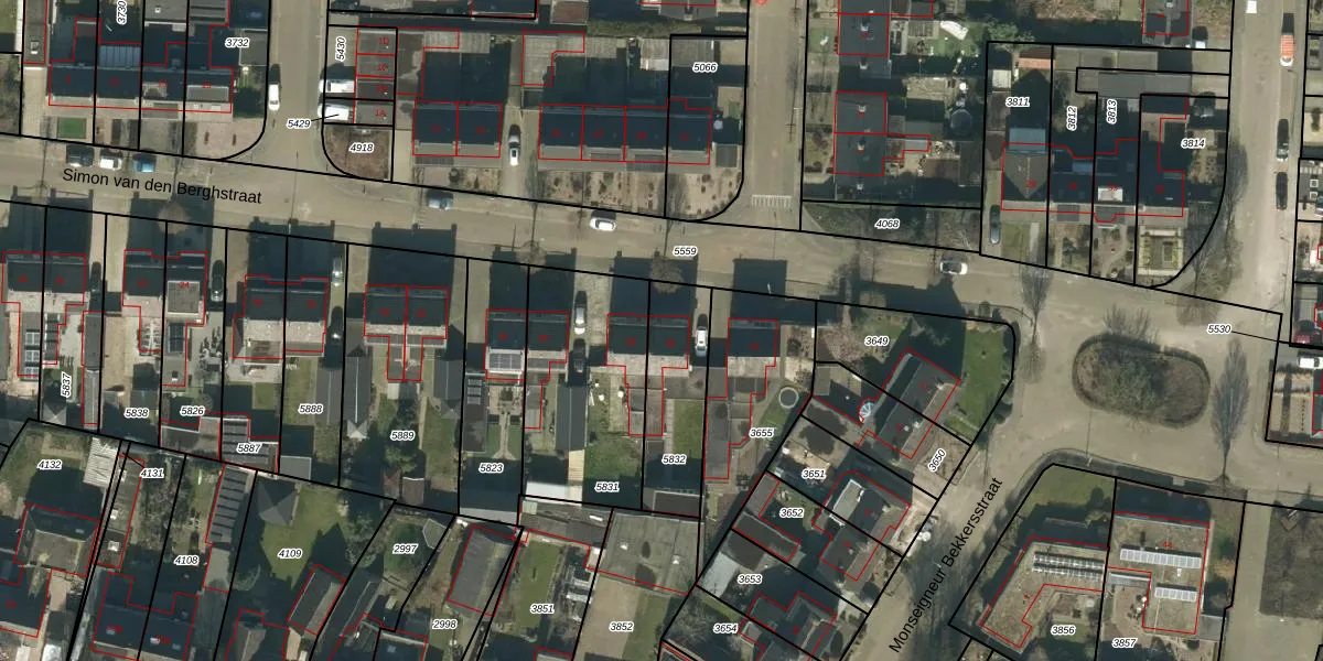 Simon van den Berghstraat 40 is gelegen op kadastraal perceel GFN00C5832. Deze kadastrale aanduiding is uniek en wordt gebruikt door het Kadaster om eigendomsrechten en andere zakelijke rechten vast te leggen. Het perceel maakt onderdeel uit van de kadastrale gemeente Geffen.