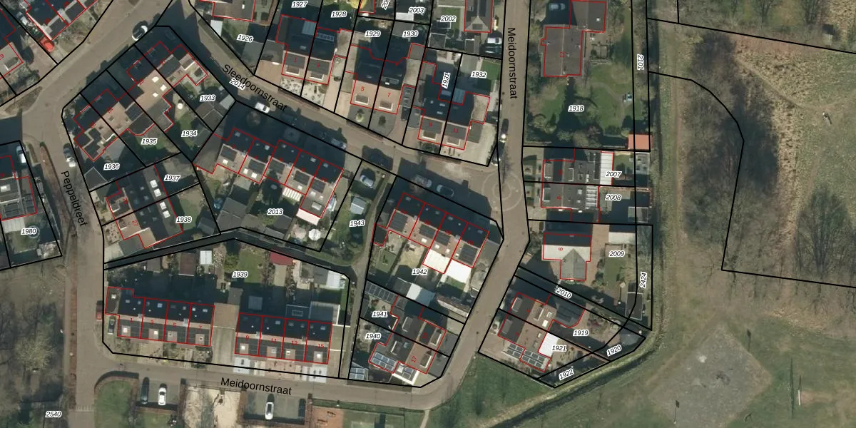 Het perceel waarop Sleedoornstraat 16 staat heeft een oppervlakte van 694 m². Dit is een groot perceel. De perceeloppervlakte wordt geregistreerd door het Kadaster. Gedetailleerde informatie over de maten van dit perceel kunt u vinden in het rapport Kadastrale kaart met maatvoering van Sleedoornstraat 16.