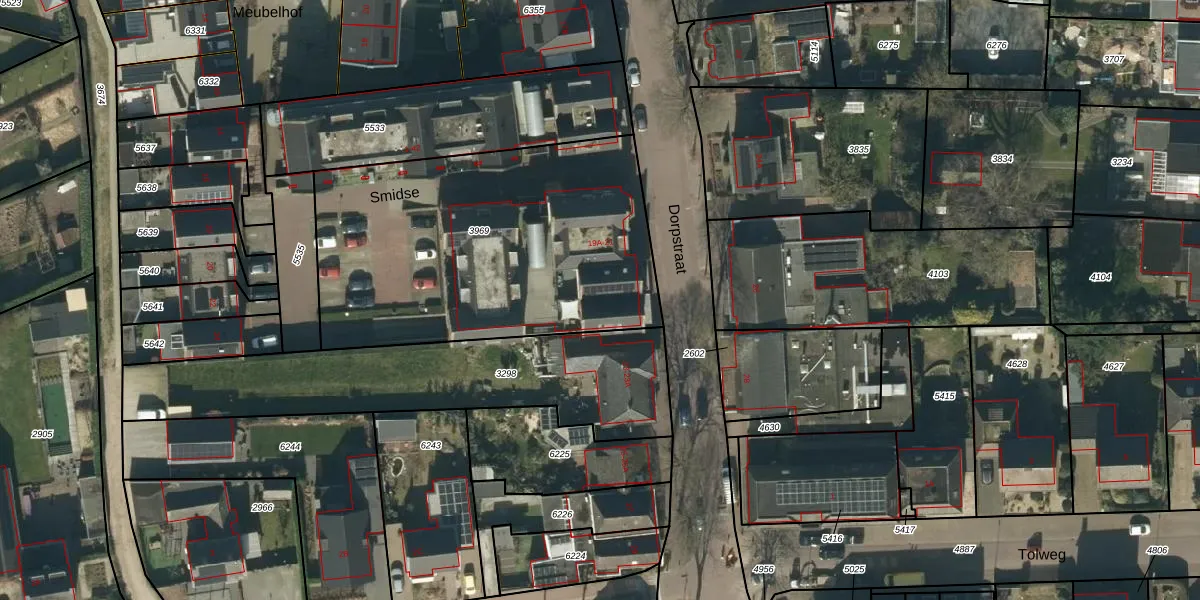 Het perceel waarop Smidse 1 staat heeft een oppervlakte van 1735 m². Dit is een zeer groot perceel. De perceeloppervlakte wordt geregistreerd door het Kadaster. Gedetailleerde informatie over de maten van dit perceel kunt u vinden in het rapport Kadastrale kaart met maatvoering van Smidse 1.