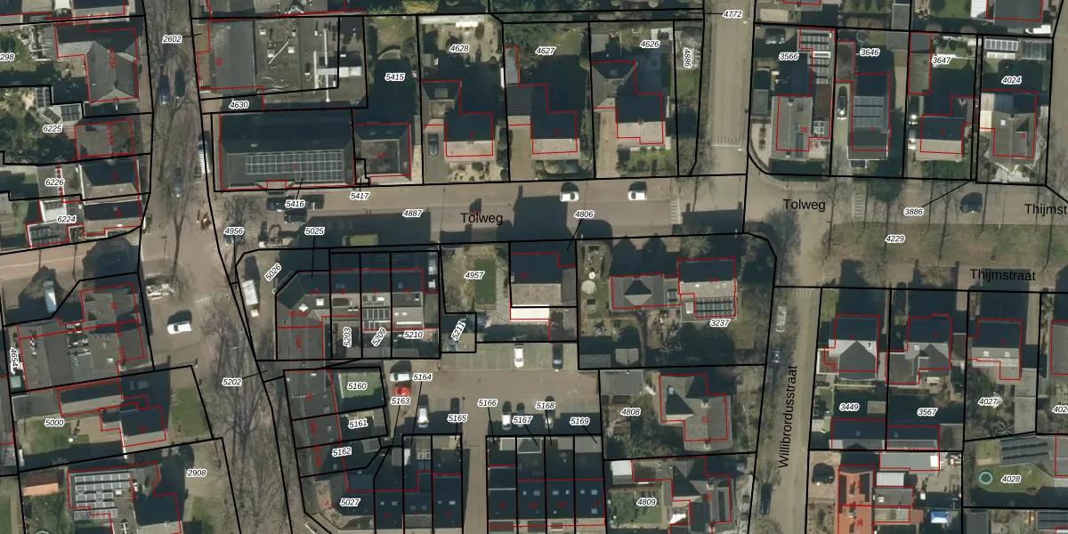 Het perceel waarop Tolweg 12 staat heeft een oppervlakte van 157 m². Dit is een middelgroot perceel. De perceeloppervlakte wordt geregistreerd door het Kadaster. Gedetailleerde informatie over de maten van dit perceel kunt u vinden in het rapport Kadastrale kaart met maatvoering van Tolweg 12.